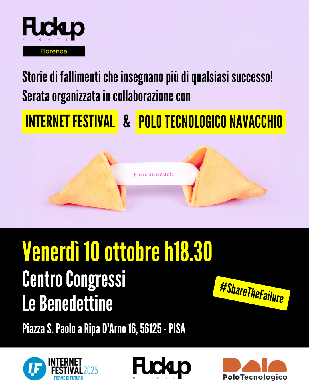 Edizione speciale a Pisa di Fuckup Nights Florence all’interno della programmazione di Internet Festival 2025.